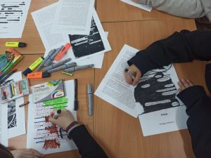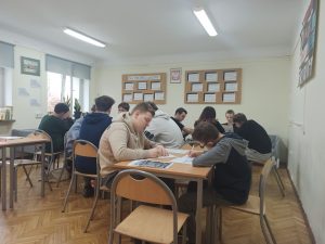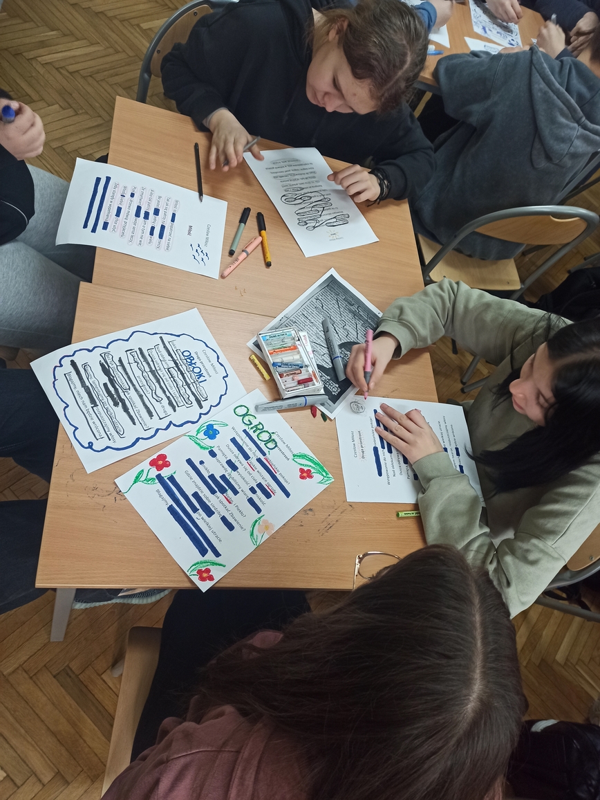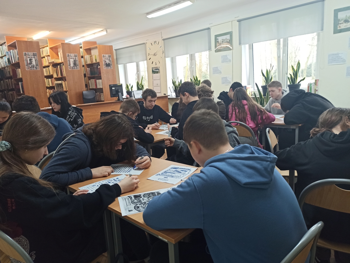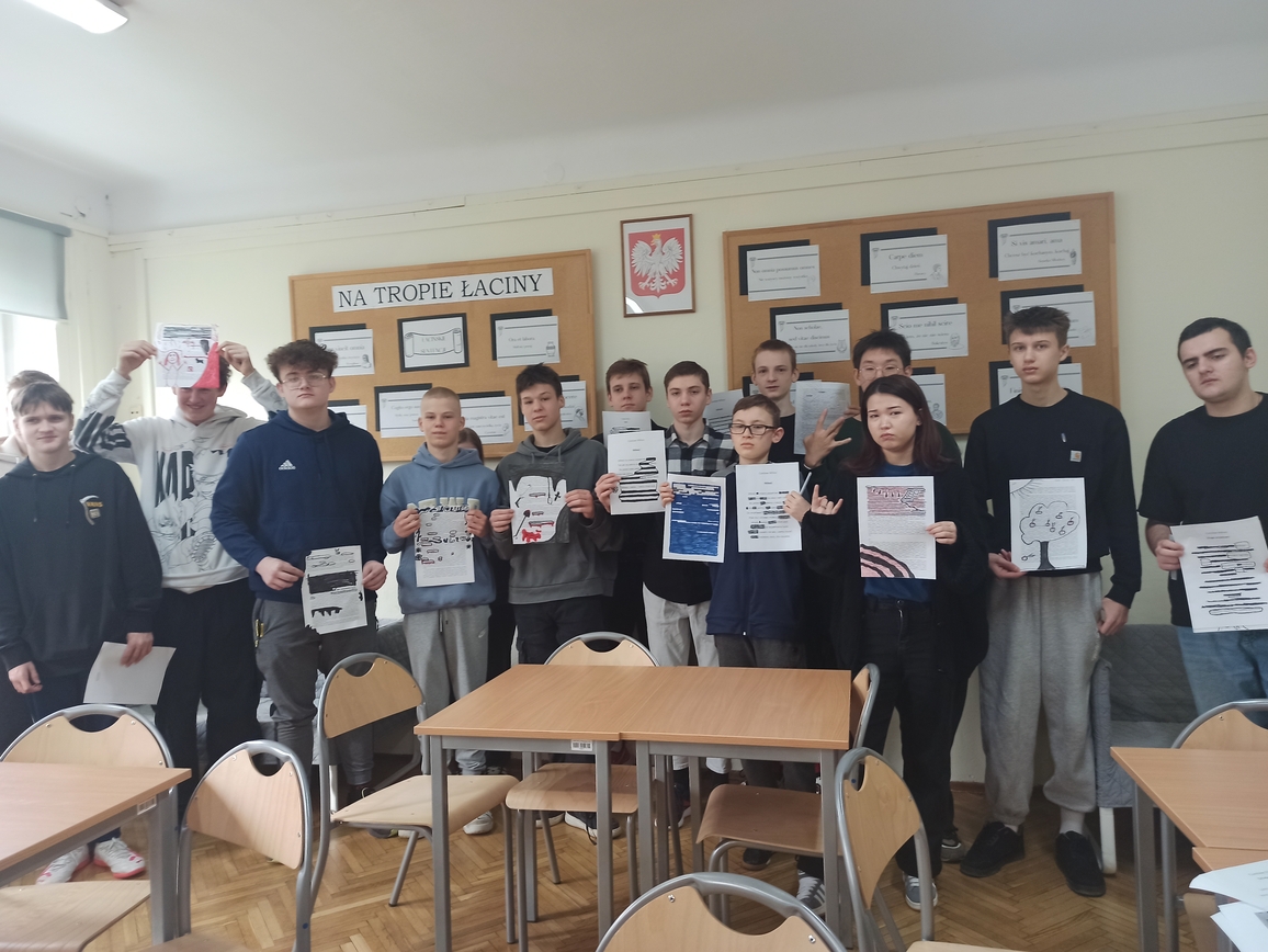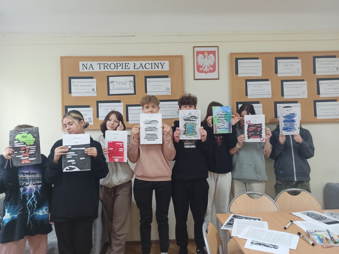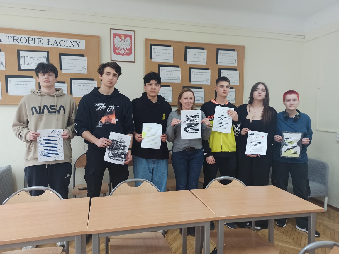 Uczniowie musieli skupić się na słowie, uważnie przeczytać fragment tekstu, zastanowić się, co ich zdaniem jest najciekawsze, czy najważniejsze, jak zestawiając słowa stworzyć nową jakość. Pracowali z twórczością Czesława Miłosza, Patrona 2024 Roku, odkrywając ją i nadając jej własne znaczenie. Wykazali się kreatywnością i talentem plastycznym przy tworzeniu unikatowych tekstów, ponieważ każdy, bez względu na umiejętności, może zostać poetą. Taka praca ze słowem pisanym rozwija świadomość literacką, uczy uważnego patrzenia na słowa i abstrakcyjnego myślenia. W warsztatach literackich uczestniczyli uczniowie klas: 1LO, 1TP, 1TŻ A i 3TP.