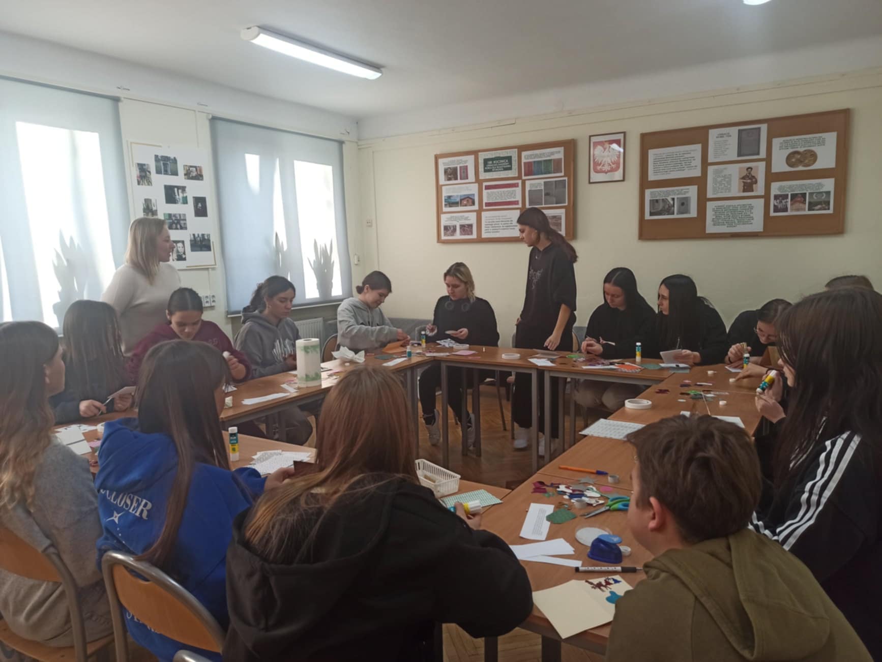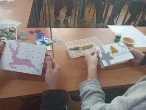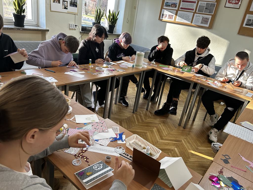 Podczas warsztatów uczniowie własnoręcznie tworzyli kolorowe kartki, wykorzystując różnorodne materiały plastyczne, takie jak kolorowy papier, brokat, wstążki czy naklejki. Każda kartka była unikatowa, a życzenia na niej zapisane płynęły prosto z serca. Dzieci w szpitalach często potrzebują słów otuchy i wsparcia, dlatego uczestnicy warsztatów starali się, aby ich słowa były pełne ciepła i nadziei.