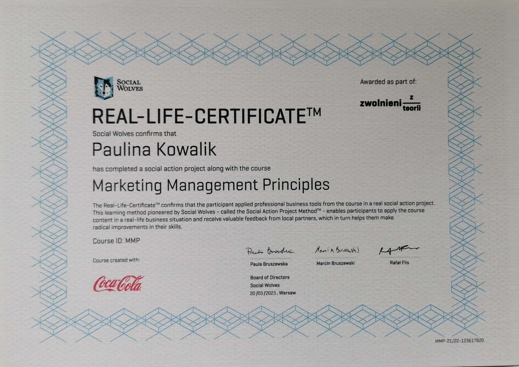 Miło nam poinformować, że uczennice klasy 4TŻiUG przy ZSR CKZ w Pszczelej Woli: Wiktoria Kłos, Paulina Kowalik i Julia Sopoćko zostały kolejny raz finalistkami praktycznej ogólnopolskiej Olimpiady Zwolnieni z Teorii i otrzymały międzynarodowy certyfikat Marketing Management Principles wydany przez Project Management Institute ATP.