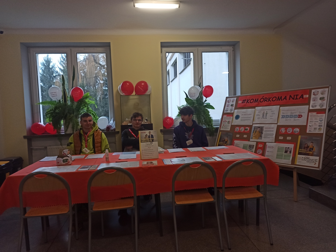 W dniu 12 grudnia, po raz pierwszy, odbył się w naszej szkole Dzień Dawcy Szpiku. Akcja  została przeprowadzona we współpracy z fundacją DKMS (Baza Dawców Komórek Macierzystych Polska). Nasza szkoła uczestniczyła w projekcie #KOMÓRKOMANIA realizowanym przez tę fundację. Misją tej organizacji jest znalezienie bliźniaka genetycznego dla każdego pacjenta potrzebującego przeszczepienia komórek macierzystych szpiku. Przedsięwzięcie polegało na edukacji uczniów i wszystkich osób  zainteresowanych tematem związanym z nowotworami krwi oraz sposobami pomocy osobom dotkniętym tą chorobą. W ramach akcji odbyło się  spotkanie  z absolwentką Technikum Pszczelarskiego  – Olgą, która zdecydowała się na niezwykły gest – oddała szpik kostny, ratując w ten sposób życie drugiego człowieka. Została dawcą faktycznym. Opowiedziała swoją inspirującą historię. Wyjaśniła jak wygląda proces oddawania szpiku.  Łącznie 12 uczniów zdecydowało się zarejestrować do banku dawców szpiku.
