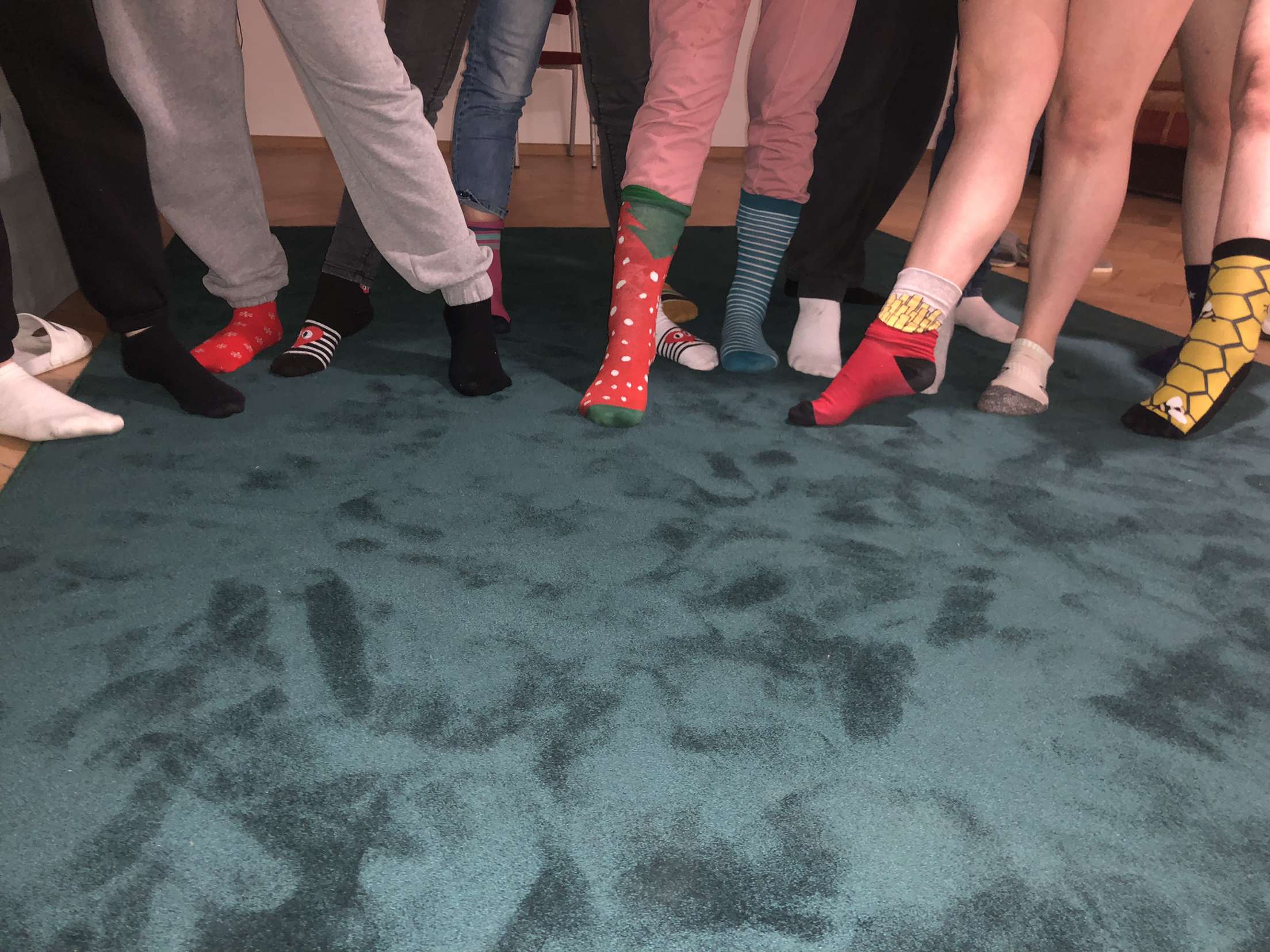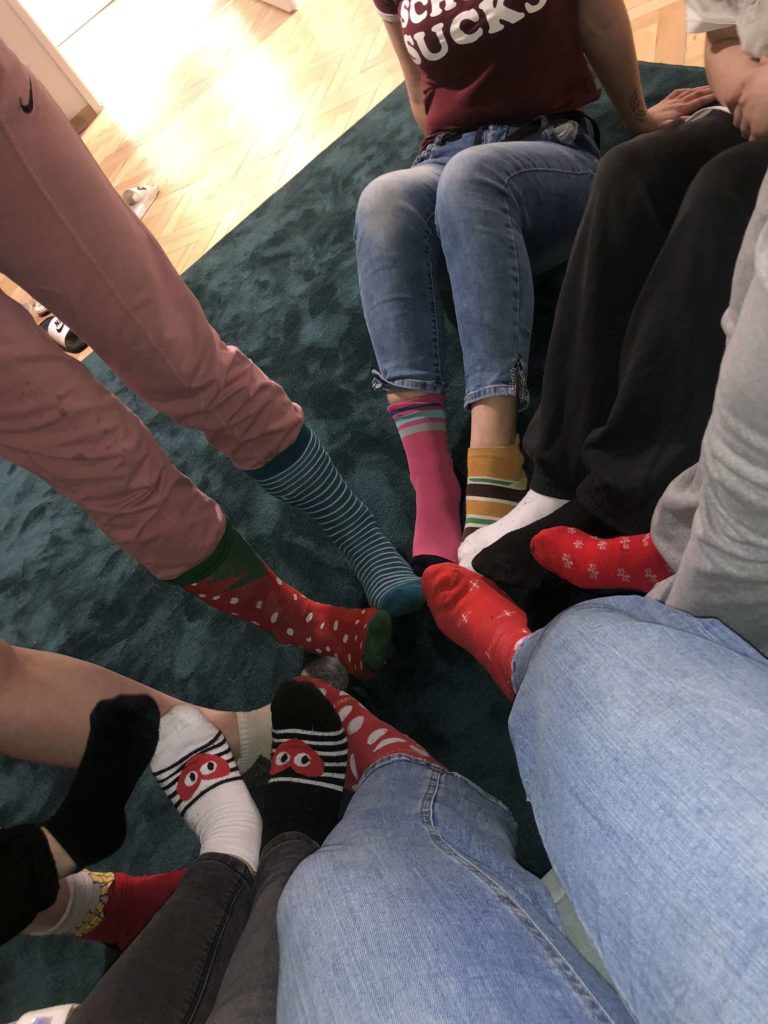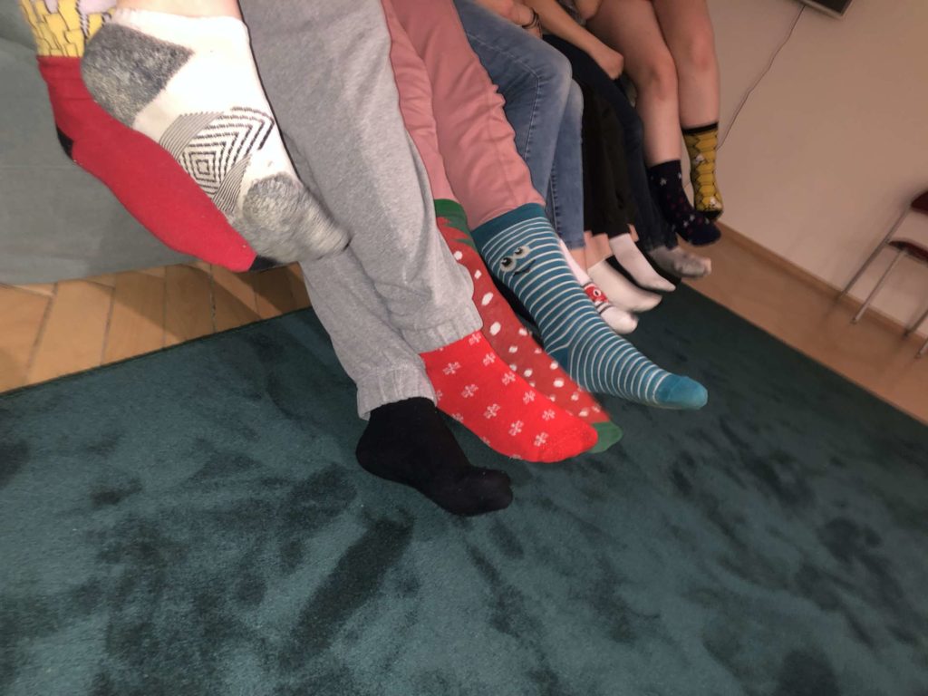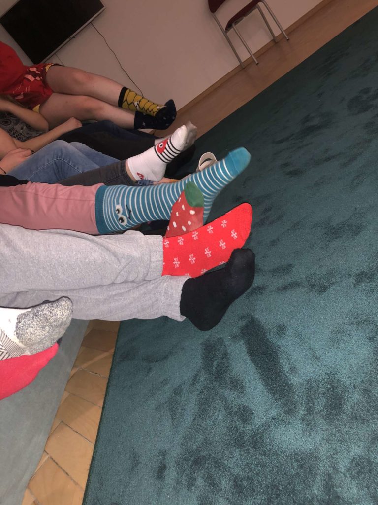 i spełniają swoje marzenia, bez względu na różnicę w liczbie chromosomów. Symbolem naszej akceptacji i szacunku było założenie dwóch niepasujących skarpetek, symbolizujących niedopasowane chromosomy. W ten sposób chcieliśmy pokazać, że integrujemy się z osobami z Zespołem Downa