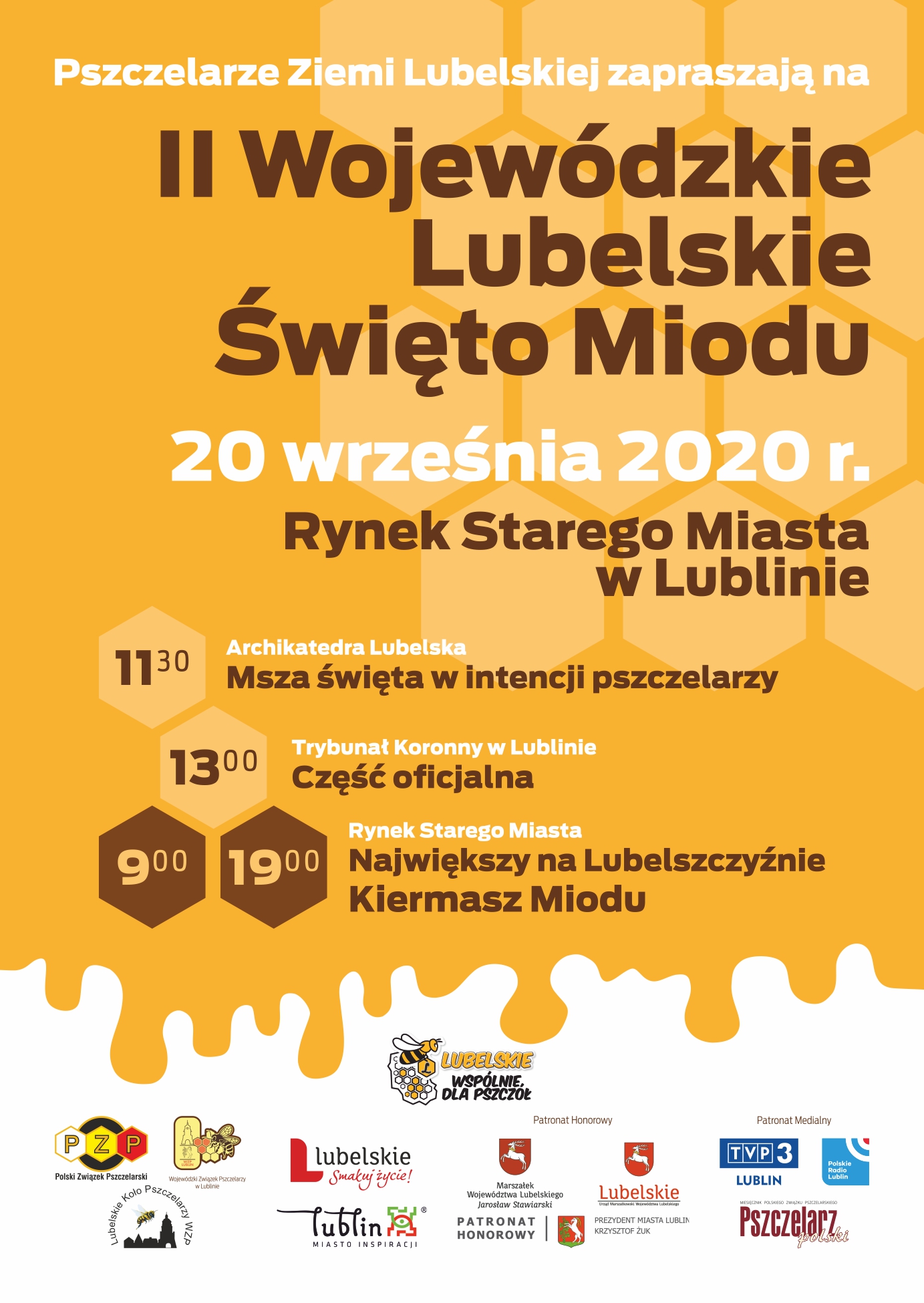 z radością informujemy, że przygotowania do II Wojewódzkiego Lubelskiego Święta Miodu, nad którym honorowy patronat objął Marszałek Województwa Lubelskiego, dobiegają końca. To wydarzenie o zasięgu regionalnym organizowane jest przez Wojewódzki Związek Pszczelarzy w Lublinie i Lubelskie Koło Pszczelarzy. Jego ideą jest popularyzacja pszczelarstwa w województwie lubelskim, upowszechnienie wiedzy na temat znaczenia pszczół dla środowiska i człowieka, lubelskich osiągnięć w zakresie prowadzenia pasiek i produkcji miodu, a także zalet stosowania i spożywania produktów pszczelich.