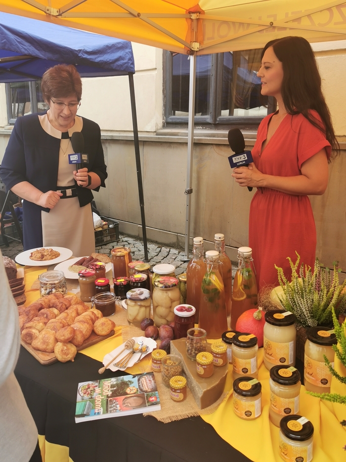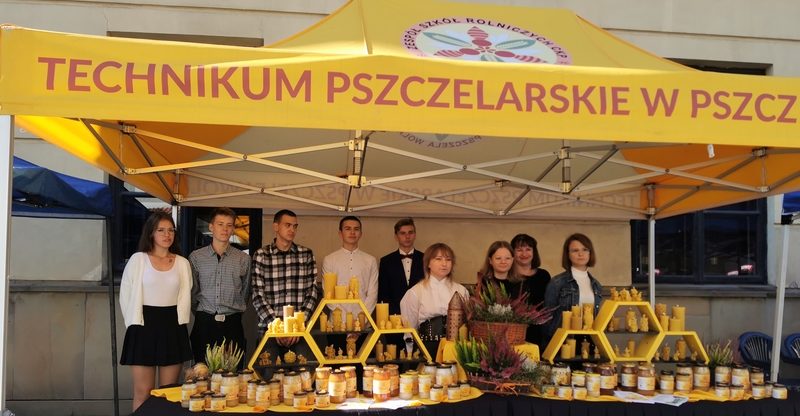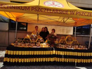 Na staromiejskich uliczkach pszczelarze z całego regionu oferowali zarówno różnego rodzaju miody, jak też wyroby pszczele i powstałe na ich bazie kosmetyki. Oczywiście na Święcie Miodu nie mogło zabraknąć stoiska naszej szkoły. Oprócz sprzedaży miodu promowaliśmy naszą szkołę i przedstawialiśmy ofertę edukacyjną szkoły. Nasze stoisko odwiedzili także redaktorzy TVP 3 Lublin, którzy mieli okazję porozmawiać z nauczycielami i uczniami naszej szkoły, propagując wiedzę na temat zastosowania miodu nie tylko w kuchni, szerszemu gronu odbiorców zebranymi przed ekranami telewizorów. Uwaga zwiedzających skupiła się także na ciekawej aranżacji stoiska, które przyciągało zaintrygowane spojrzenia zwiedzających. Mamy nadzieję spotkać się znów za rok na Starym Mieście na świecie miłośników pszczół i miodu…