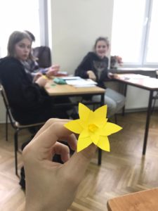 19 kwietnia przypada rocznica wybuchu powstania w getcie warszawskim. Tego dnia Muzeum Historii Żydów Polskich POLIN organizuje corocznie akcję społeczno-edukacyjną „Żonkile”, w której wzięła udział nasza szkoła. Uczniowie obejrzeli film „Muranów – Dzielnica Północna” w reżyserii Łukasza Kamila Kamińskiego, który opowiada historię dawnej dzielnicy żydowskiej w Warszawie i jej mieszkańców. W czasie lekcji wykonaliśmy papierowe żonkile, które są symbolem pamięci o powstaniu. Akcji od początku towarzyszy hasło „Łączy nas pamięć”, które podkreśla siłę wspólnoty, znaczenie solidarności, potrzebę dialogu ponad podziałami. Była to dla nas ważna lekcja historii.