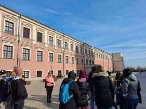 Klasa 3LO  we wtorek, 26 października, wzięła udział w lekcji historyczno-polonistycznej na temat Holocaustu i  historii miasta Lublina. Zwiedzanie Państwowego Muzeum na Majdanku rozpoczęliśmy od Pomnika Walki i Męczeństwa poprzez wystawy, łaźnię, baraki, krematorium i Mauzoleum. Uczniowie w ciszy, bez pośpiechu pokonali trasę zwiedzania, wykazując się szacunkiem i empatią wobec pamięci ofiar obozu koncentracyjnego. Zwiedzanie Starego Miasta rozpoczęliśmy od Wzgórza Zamkowego. Obejrzeliśmy panoramę, poznaliśmy historię Bramy Grodzkiej, Placu po Farze, Rynku, Trybunału Koronnego, Bramy Krakowskiej. Na koniec pozdrowiliśmy mieszkańców Wilna poprzez wirtualne drzwi na Placu Litewskim. To był naprawdę dobry dzień!