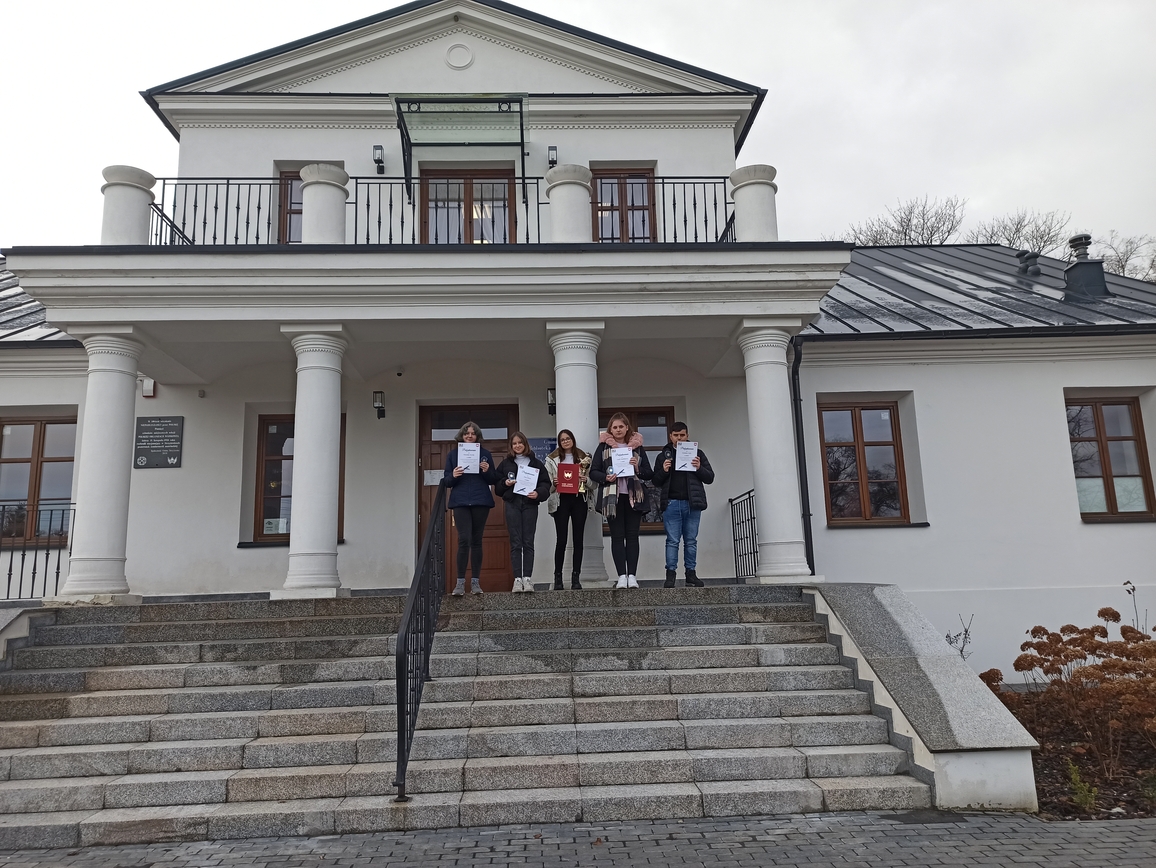 Dnia 1 grudnia 2021 roku w dworku rodziny Kołaczkowskich w Strzyżewicach odbył się finał Gminnego Konkursu Ortograficznego pod Honorowym Patronatem Wójta Gminy Strzyżewice „Wehikuł Wyobraźni – Mistrz Ortografii Gminy Strzyżewice”. Do zmagań finałowych, które przeprowadzono w czterech kategoriach wiekowych, stanęło w sumie 34 osoby. Naszą szkołę reprezentowali: Aleksandra Krasicka – Ziomek (IIIALO), Anna Bożek (ILO),Weronika Dyczko (ILO), Szymon Zięba (IILO), Emilia Małolepsza (III TŻ). Uczestnicy mierzyli się z oryginalną treścią zabawnych dyktand, wymyślanych przez Stanisława Lema dla siostrzeńca żony pisarza – Michała Zycha.