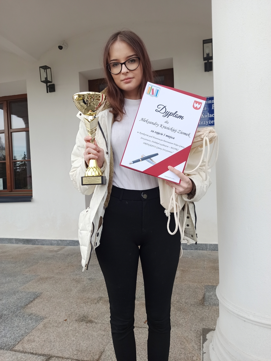 Zwyciężczynią w kategorii: Szkoły ponadpodstawowe została Aleksandra Krasicka-Ziomek, uczennica klasy IIIA Liceum Ogólnokształcącego.