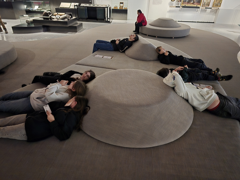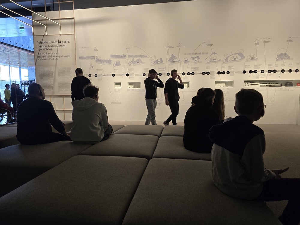 Tymże tropem nowoczesności muzeów narodowych wiedzeni, zameldowaliśmy się w przedostatni piątek lutego w progach warszawskiej Cytadeli, by w gronie tegorocznych Pierwszaków – głównie Technikum Pszczelarskiego, Żywienia i Usług Gastronomicznych oraz Hodowcy Koni – móc oddać się wizualno-poznawczej konsumpcji ‘świeżynki’ pośród muzealnych map kraju – Muzeum Historii Polski. Pomimo raczkowania i perspektywy osiągnięcia pełni ekspozycyjnej w okolicach roku 2026 (trzymamy kciuki za to, by nic owych planów nie pokrzyżowało), już nieznaczne zanurzenie w jedynej dotąd czynnej, przepastnej sali wystawowej, wrażeń dostarcza nie lada. Aranżacja eksponatów umiejętnie aktywuje wielozmysłowość; audio-guide domyka się w zgrabną 45-minutową lekcję muzealną; spoiwo czasowe sprytnie zaprasza do przemyśleń również historię najnowszą – w tym konflikt militarny na terytorium Ukrainy oraz niedawne niesnaski covidowe. Imponuje postawa indywidualnych darczyńców, ofiarujących muzeum kąski prywatnych zbiorów, by ogląd wielowątkowej przeszłości ojczyzny nasycić realizmem unikalnych artefaktów.