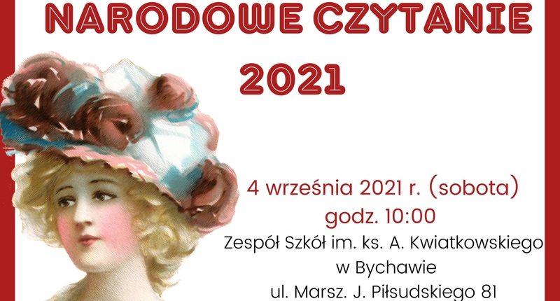 4 września 2021 godz. 10:00 w Amfiteatrze w zespole Szkół im. ks. A. Kwiatkowskiego w Bychawie odbędzie się Narodowe Czytanie 2021.