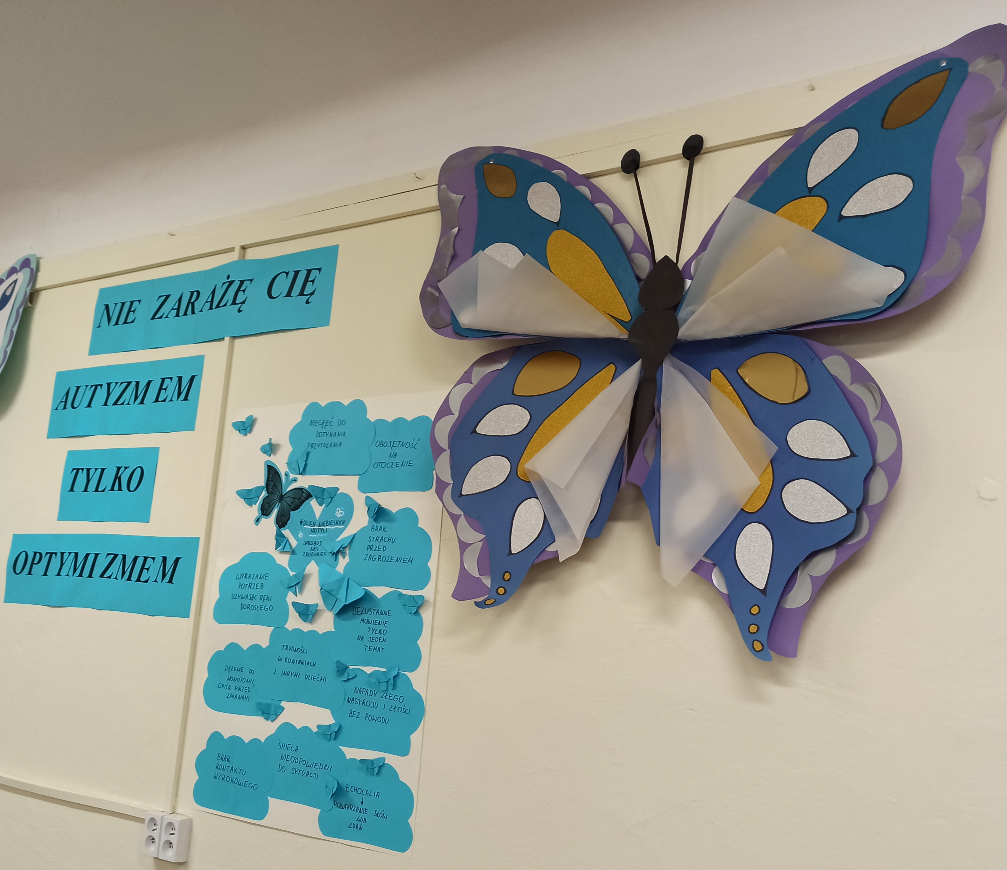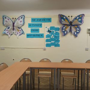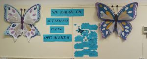 Po raz kolejny Samorząd Uczniowski włączył się w kampanię informacyjną dotyczącą osób autystycznych. Młodzież zaangażowała się w przygotowanie instalacji artystycznej „Nie zarażę Cię autyzmem, tylko optymizmem”. Działania nasze miały na celu podnoszenie świadomości społecznej na temat zaburzeń ze spektrum autyzmu. Miały zachęcić do podejmowania działań