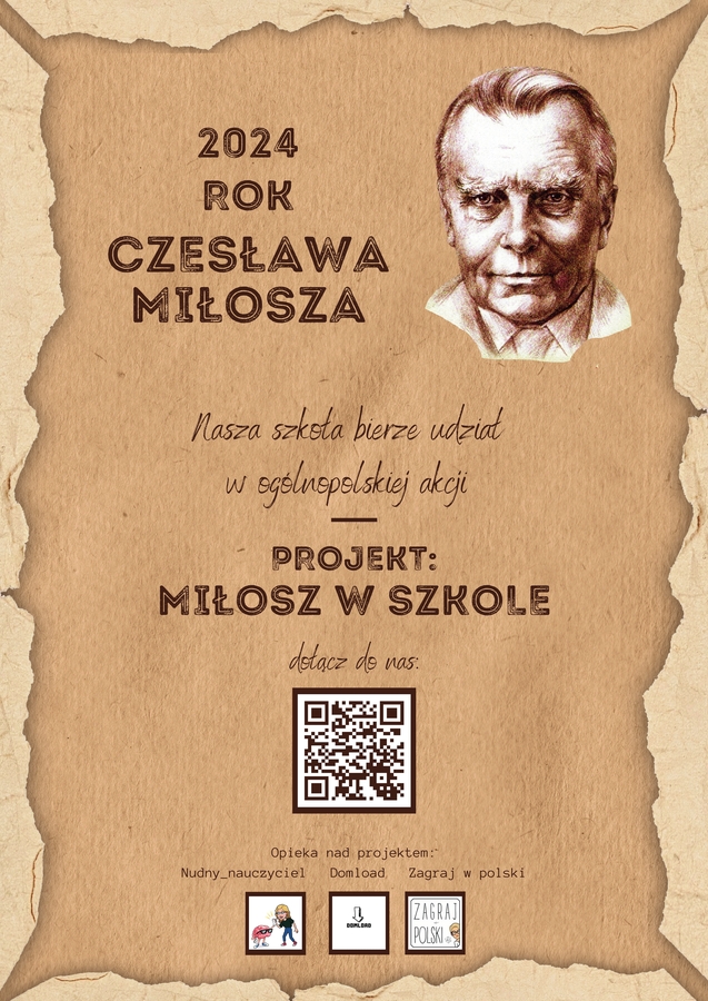 Rok 2024 ogłoszony został przez Senat Rzeczypospolitej Polskiej Rokiem Czesława Miłosza. Nasza szkoła przystępuje do ogólnopolskiego projektu „Miłosz w szkole”. Miłosz był świadkiem największych wydarzeń minionego stulecia: I wojny światowej, rewolucji w Rosji, odzyskania przez Polskę niepodległości, społecznych i narodowościowych przemian w II Rzeczypospolitej, apokalipsy na ulicach okupowanej Warszawy, Holokaustu i starcia dwóch totalitaryzmów, emigracji w świecie podzielonym żelazną kurtyną, upadku sowieckiego imperium i budowy demokracji. Te wydarzenia odcisnęły swoje piętno na postrzeganiu przez niego powojennego świata i wpłynęły na uniwersalny wymiar jego twórczości, co w 1980 roku znalazło najwyższe uznanie Komitetu Noblowskiego.