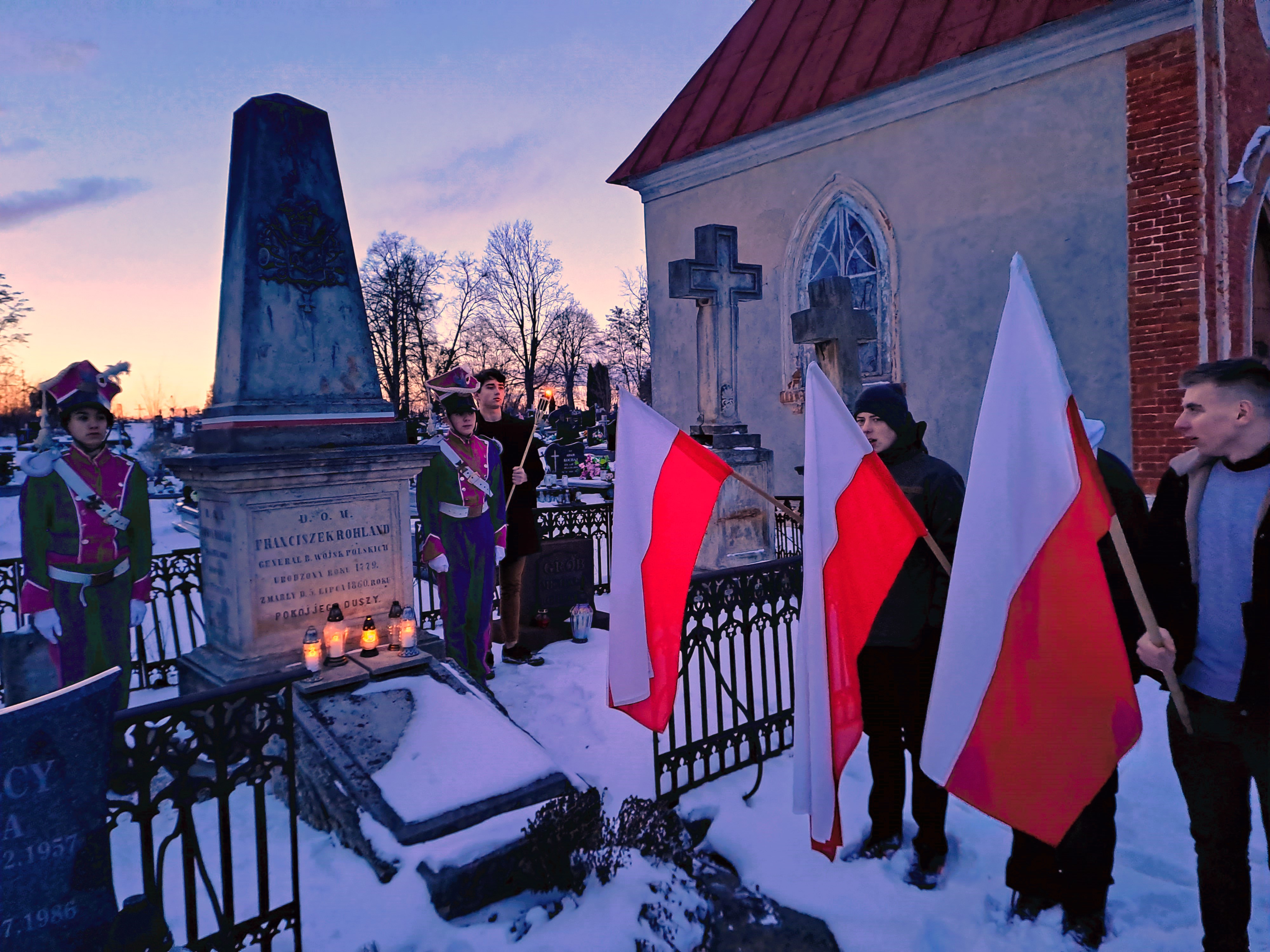 W Kiełczewicach szczególną uwagę młodzieży zwróciła symboliczna mogiła nieznanego z imienia i nazwiska żołnierza „Powstania Polskiego” z 1863 roku. Uczniowie poznali życiorysy: Rotmistrza Romana Okulic-Kozaryna założyciela Ochotniczej Straży Pożarnej z 1916 roku i zakonspirowanego Oddziału Polskiej Organizacji Wojskowej, uczestnika wojny z Sowietami. Ślady trudnej historii naszego narodu przetrwały także na grobach: Klamborowskiego i Gintowta uczestników między innymi wojen napoleońskich. W Bystrzycy Starej tablica pamiątkowa porucznika pilota Jana Jakubowskiego, który zginął w 1943 roku w Anglii. W Bychawce groby Generała Franciszka Rohlanda, bohatera bitwy pod Olszynką Grochowską. Kajetana Koźmiana poety klasycystycznego i adwersarza Adama Mickiewicza. Wspaniałego pamiętnikarza, świadka swojej epoki, mieszkańca pobliskich Piotrowic. Senatora i ministra spraw wewnętrznych Królestwa Polskiego. W miejscu spoczynku bohaterów stanęła warta honorowa w mundurach z epoki Księstwa Warszawskiego przywdziali uczniowie Zespołu Szkół Rolniczych CKZ w Pszczelej Woli. Wychowankowie zapalili znicze oraz odśpiewali pieśni i piosenki patriotyczne z epoki.
