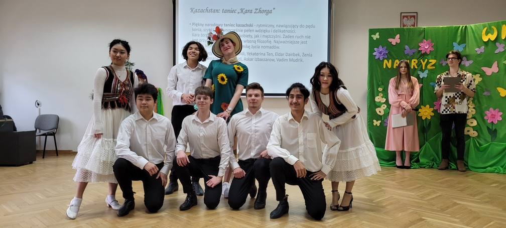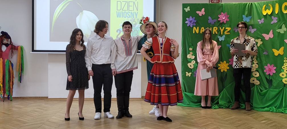 W naszej szkole uczą się uczniowie z różnych krajów i dzień 21 marca był okazją do poznania elementów kultury innych narodów. Reprezentacje uczniów z Białorusi, Kazachstanu, Polski i Ukrainy zaprezentowały całej społeczności szkolnej charakterystyczne dla swojego narodu pieśni, poezję, taniec i kuchnię. W części konkursowej – uczniowie, nauczyciele i dyrekcja szkoły świetnie się ze sobą bawili. Obchody Dnia Wiosny zakończone zostały meczem w siatkówkę nauczyciele kontra uczniowie oraz wspólnym ogniskiem z kiełbaskami.