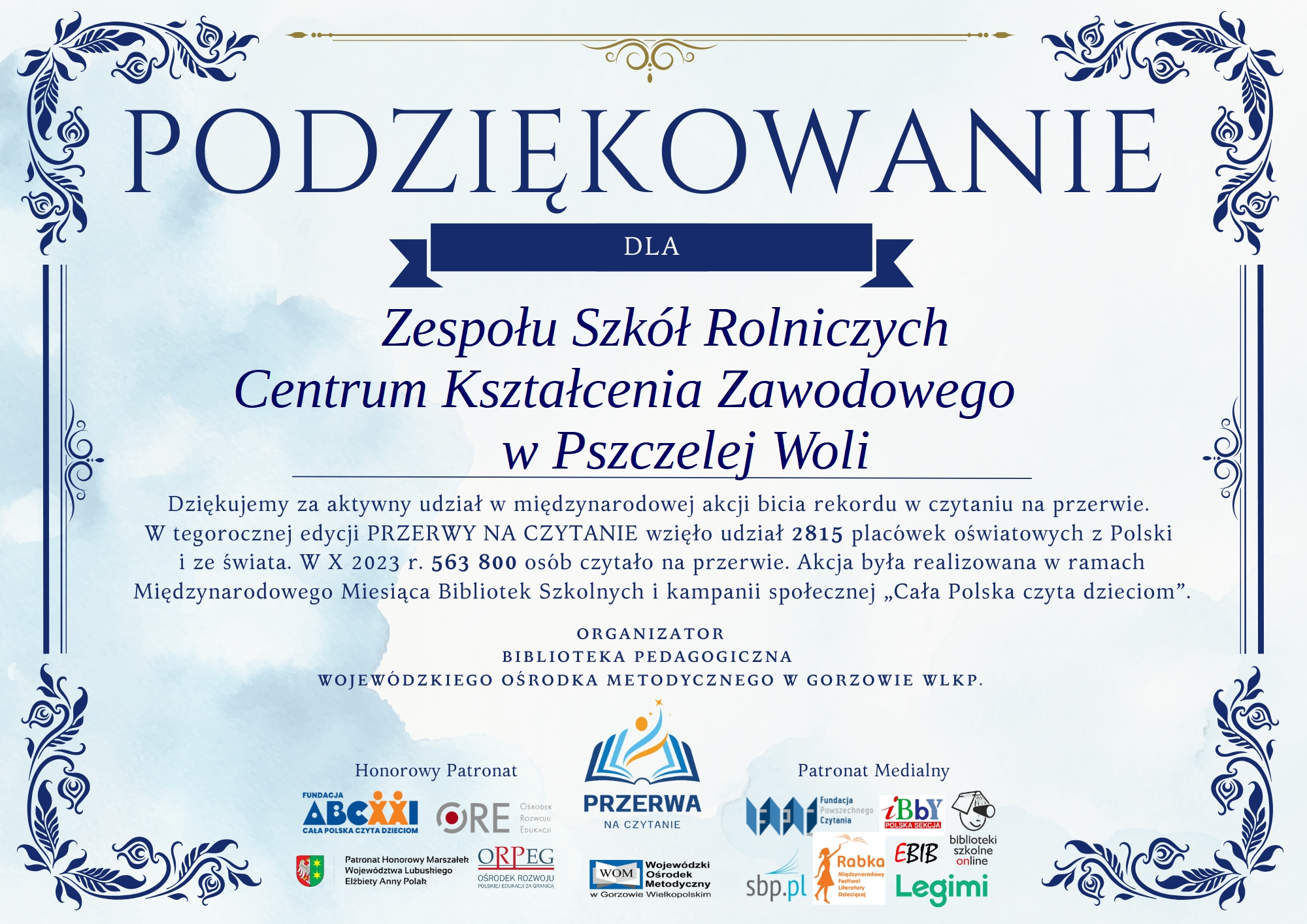 25 października 2023 roku społeczność naszej szkoły wzięła udział w IV Międzynarodowej edycji VIII Ogólnopolskiej Akcji „PRZERWA NA CZYTANIE”. Udowodniliśmy, że lubimy czytać.