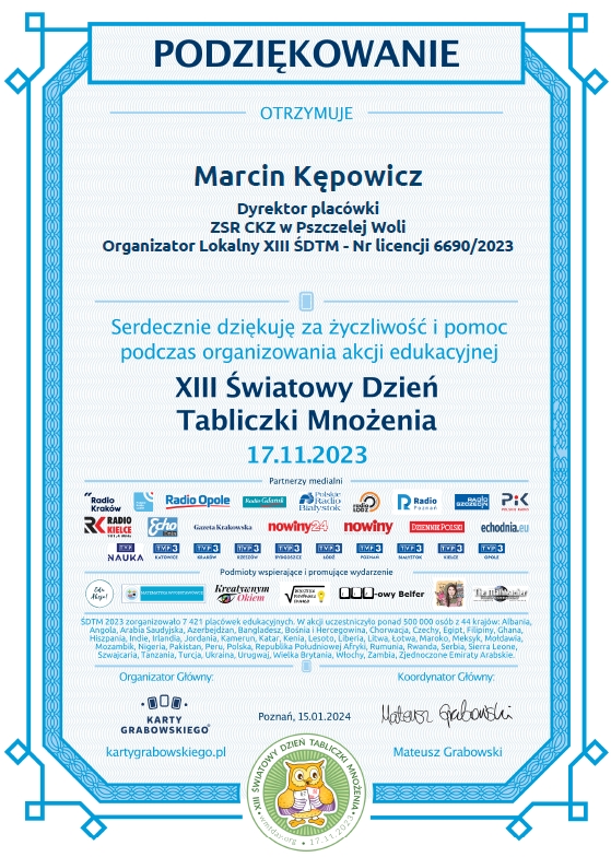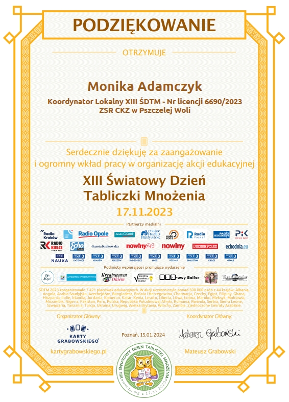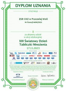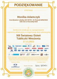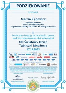 Podziękowania za udział w XIII Światowym Dniu Tabliczki Mnożenia