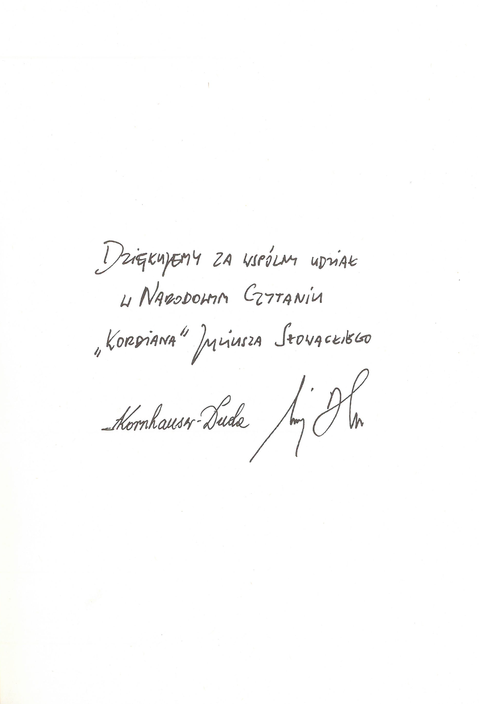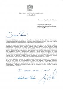 Podziękowanie od Prezydenta Andrzeja Dudy za udział w Narodowym Czytaniu 2024