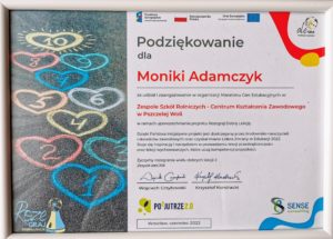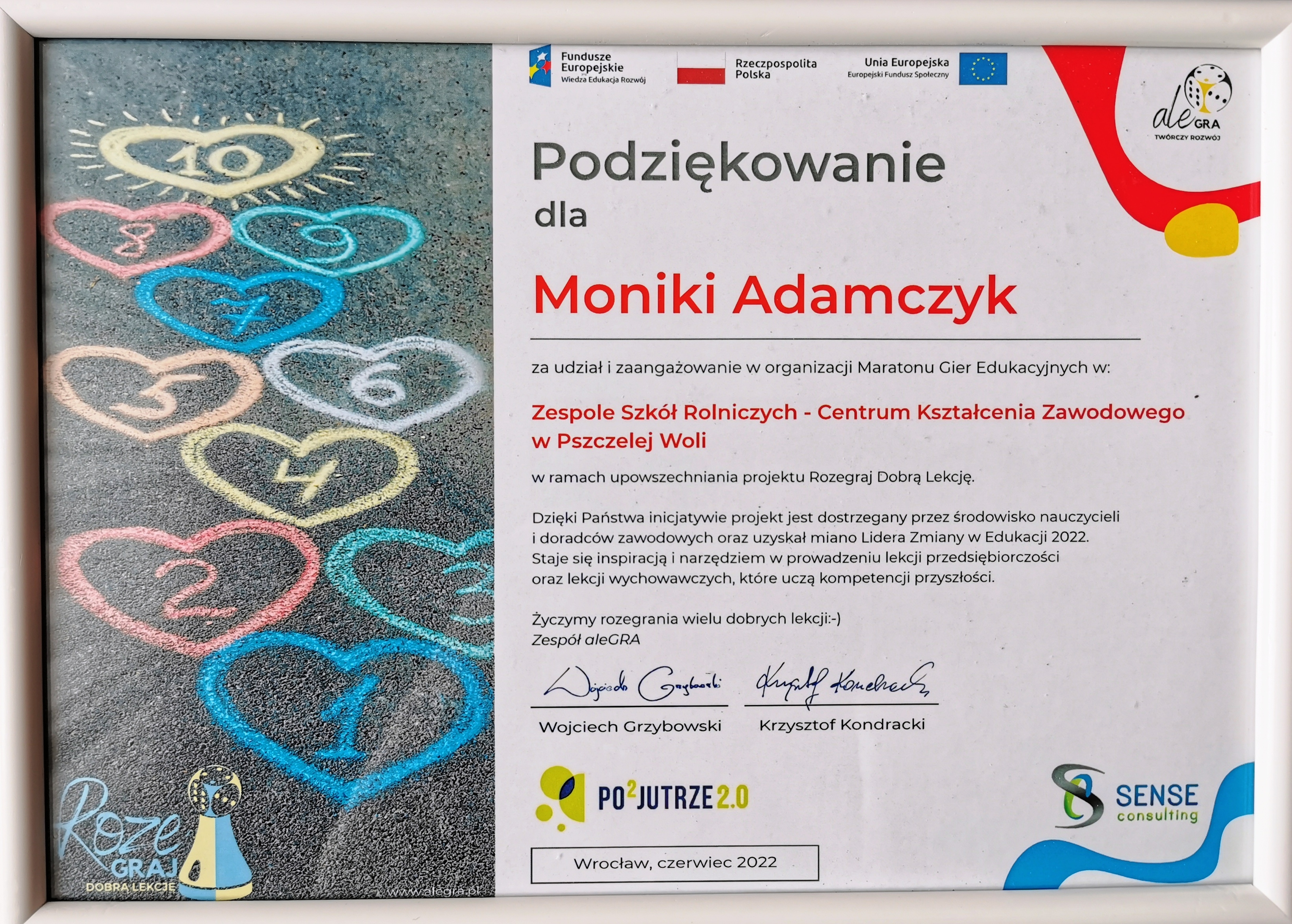 Podziękowanie za udział w projekcie „Rozegraj dobrą lekcję”
