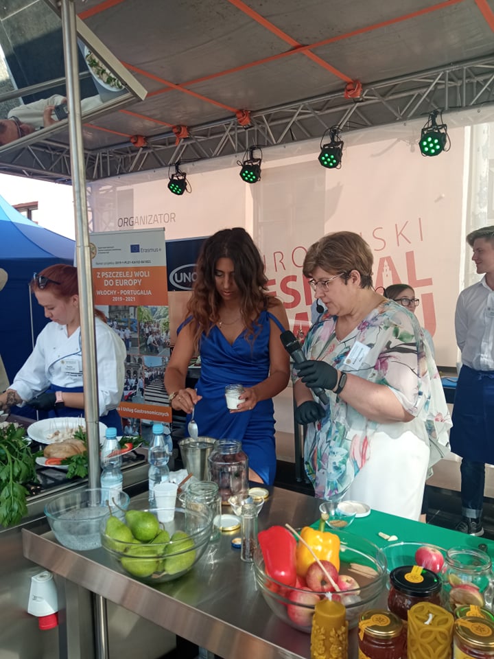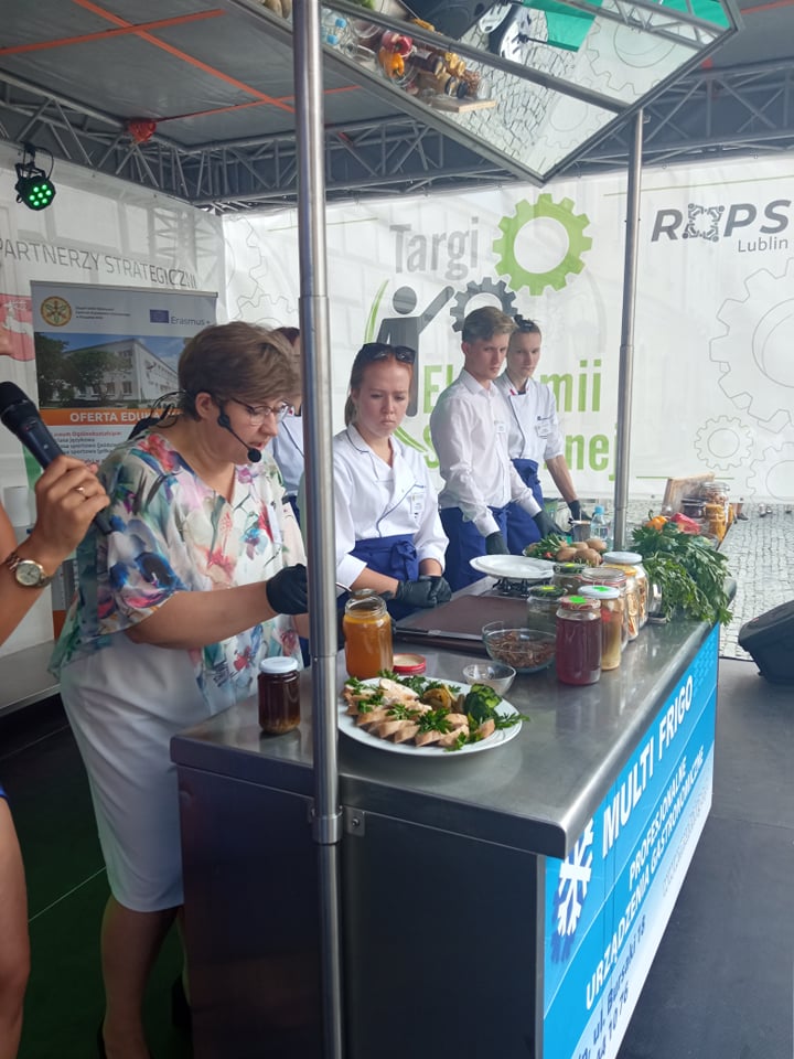 W niedzielę 12.09.2021r.  ,,Scena Smaku” ponownie   należała do uczniów ZSR CKZ Pszczelej Woli, którzy podczas pokazu kulinarnego ,, Romantyczne Lubelskie – Romantyczne Polesie z książką kucharską hrabiów na Włodawie i Różance” pod opieką Anny Szcześniak i Elżbiety Wróbel odtworzyli potrawę według przepisu z XVI wieku o nazwie Ptaków zaduszenie. „Udziałaj brzęczkę dobrze słodką z miodem, a weźmi kwiatu bzowego do niej, warzeć ją dobrze, aż będzie prawie czarna. Potym przecedź ją przez druślak, wlej do czystego garca, a okorzeń pieprzem, szafranem, goździkami, imbirem, cynamonem. Potym ptaki warz dobrze i przebierz czyście pomału, potym weźmi łoju skopowego świeżego, rozpuść, przecedź przez sito na tę juchę na palec na mięso, wystaw, aby ostygło”.