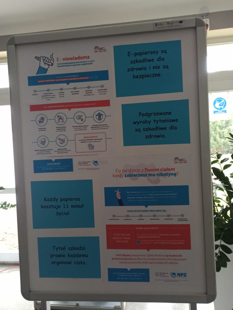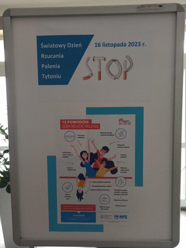 Światowy Dzień Rzucania Palenia przypadł w tym roku 16 listopada. Ideą  tego dnia jest zwrócenie uwagi na społeczne i ekonomiczne skutki palenia tytoniu, a przede wszystkim na skutki zdrowotne spowodowane paleniem papierosów. Papierosy są najbardziej rozpowszechnioną, ogólnodostępną i akceptowalną społecznie używką. Światowa Organizacja Zdrowia uznała palenie tytoniu za czynnik najpoważniejszego ryzyka zdrowotnego i główną przyczynę przedwczesnej umieralności.Ważnym elementem profilaktyki palenia tytoniu jest udostępnianie wiedzy na temat jego skutków zdrowotnych, w tym dotyczących palenia biernego, czy wpływu na zdrowie nowego sposobu palenia, jakim jest korzystanie z papierosów elektronicznych.