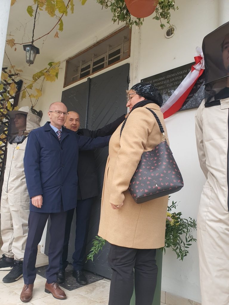 Nasi goście wspólnie z dyrekcją, nauczycielami, pracownikami i uczniami ZSR CKZ w Pszczelej Woli uczestniczyli w uroczystości odsłonięcia i poświecenia tablicy pamiątkowej wyjątkowej instytucji – szkole pszczelarskiej o niepowtarzalnej atmosferze, wyjątkowym klimacie z bogatą tradycją i osiągnięciami. Jest to wyjątkowa szkoła, do której ochoczo powracają absolwenci, ale równie chętnie przybywają nowi uczniowie by zdobywać niezbędną wiedzę i doskonalić swoje umiejętności.