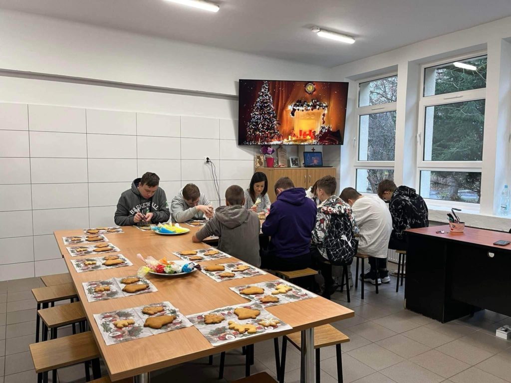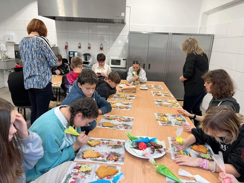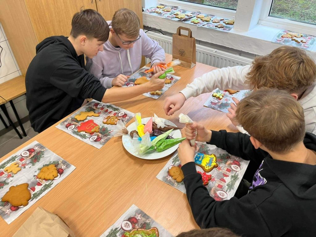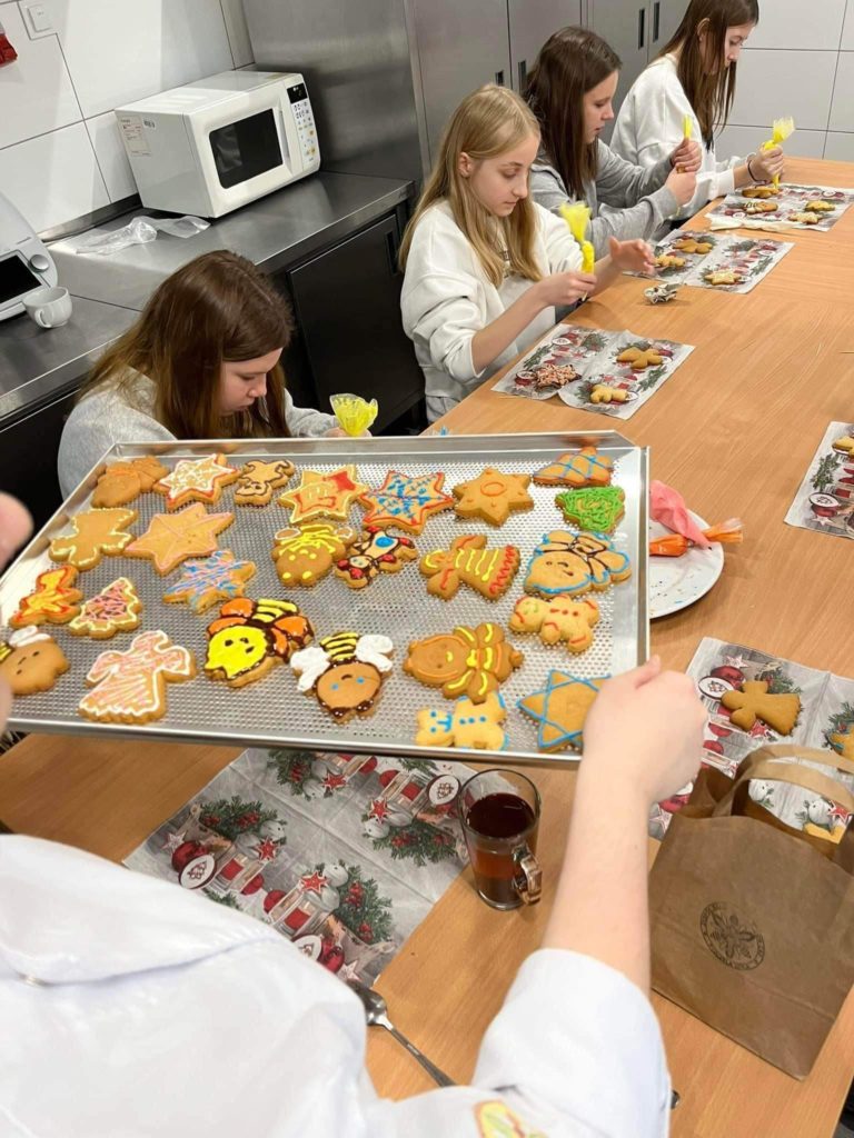 Dnia 9 grudnia 2022r gościliśmy młodzież z zaprzyjaźnionych szkół podstawowych na warsztatach bożonarodzeniowych. Szczęśliwcy, którym udało się dotrzeć, a nie zmogła ich grypa mogli rozwijać swe talenty zdobiąc pierniki, by później z łasuchową zachłannością dobrać się do tych pyszności. Bardziej cierpliwi wykonywali misternie zdobione kartki świątecznie. Nie zabrakło też pokazu wylewania świec woskowych i własnoręcznego ich skręcania. Młodzież zapraszamy ponownie za rok.