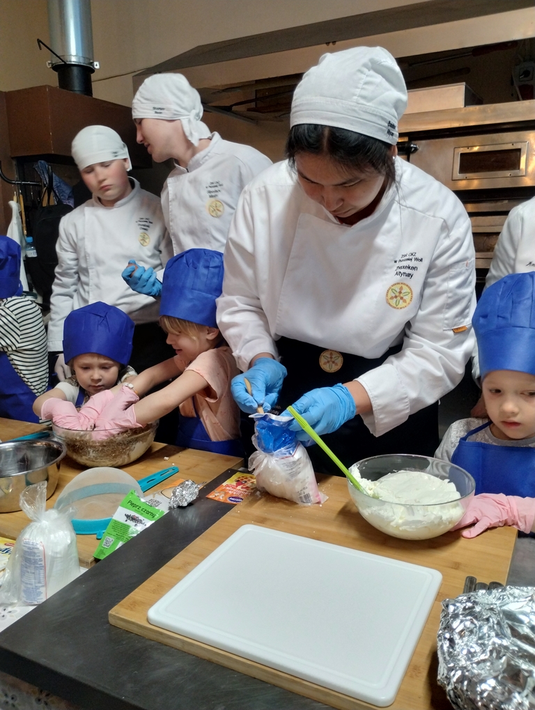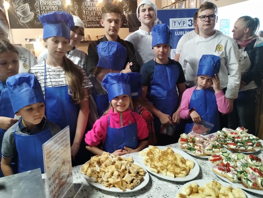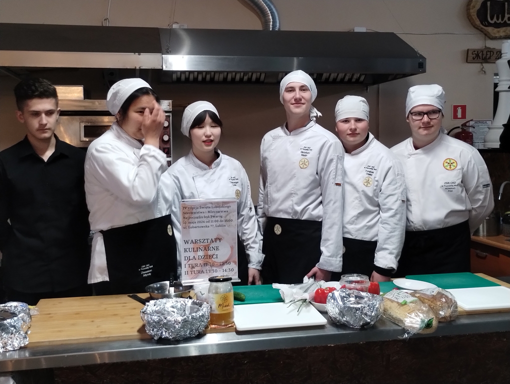 Podczas tegorocznego święta Młodzież Technikum Pszczelarskiego kształcąca się w zawodzie technik żywienia i usług gastronomicznych prowadziła warsztaty kulinarne dla dzieci. Uczestnicy nie tylko mogli przyglądać się przygotowywaniu potraw ale również pod okiem uczniów mogli zrobić własne kanapeczki z pastą twarogową, naleśniki z serem, kluski leniwe oraz kotleciki z kaszy gryczanej. Wiele osób było zainteresowanych przepisem na kotleciki. Zabawa dla dzieci i towarzyszącym im opiekunom była wspaniała. Młodzież doskonale spisała się podczas pracy z dziećmi.