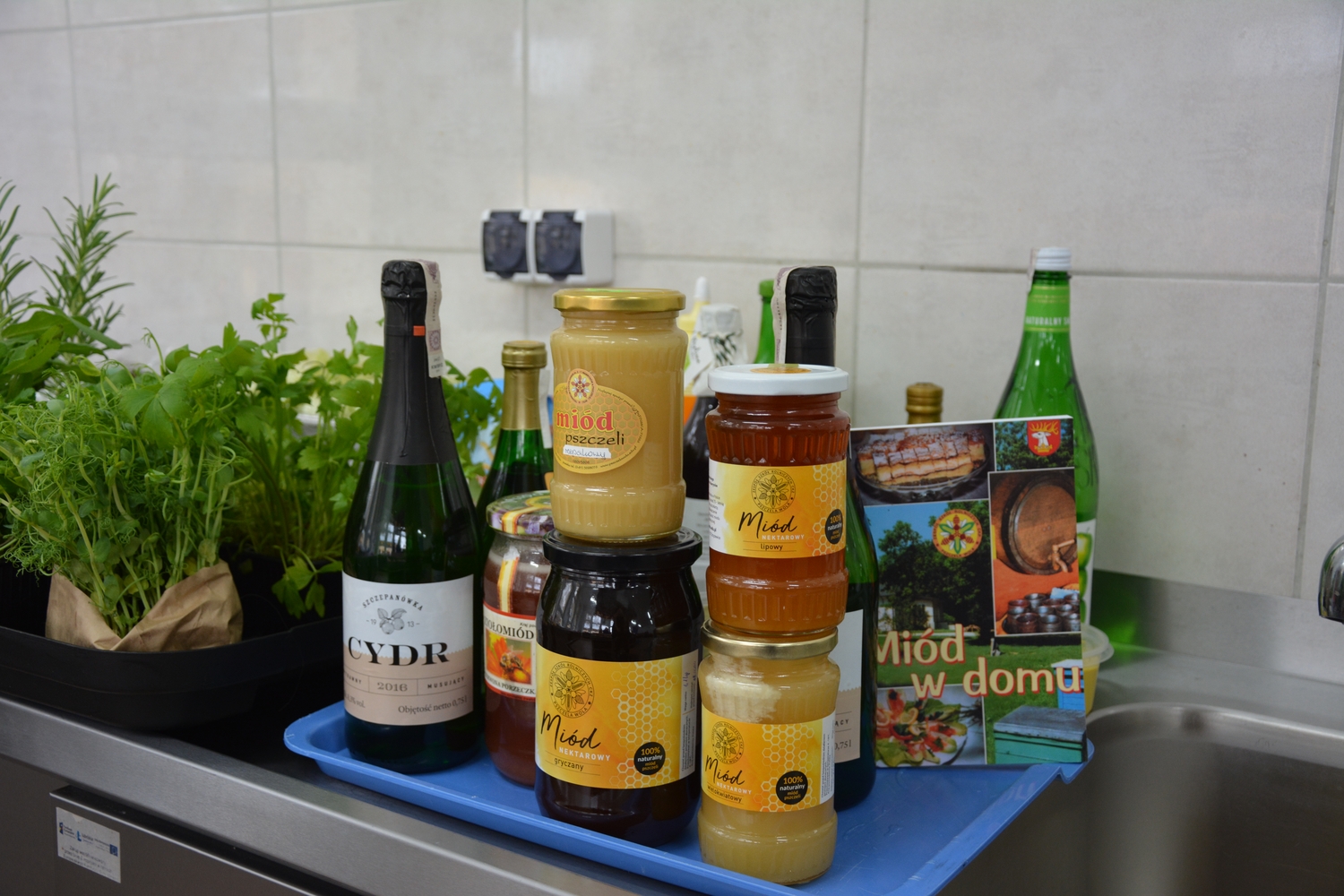 Pod koniec pracowitego dnia  stół degustacyjny zastawiony był potrawami do przygotowania których użyto  produktów  pochodzących  lubelskich gospodarstw, grodów, sadów, pasiek