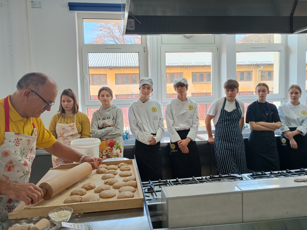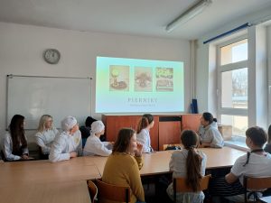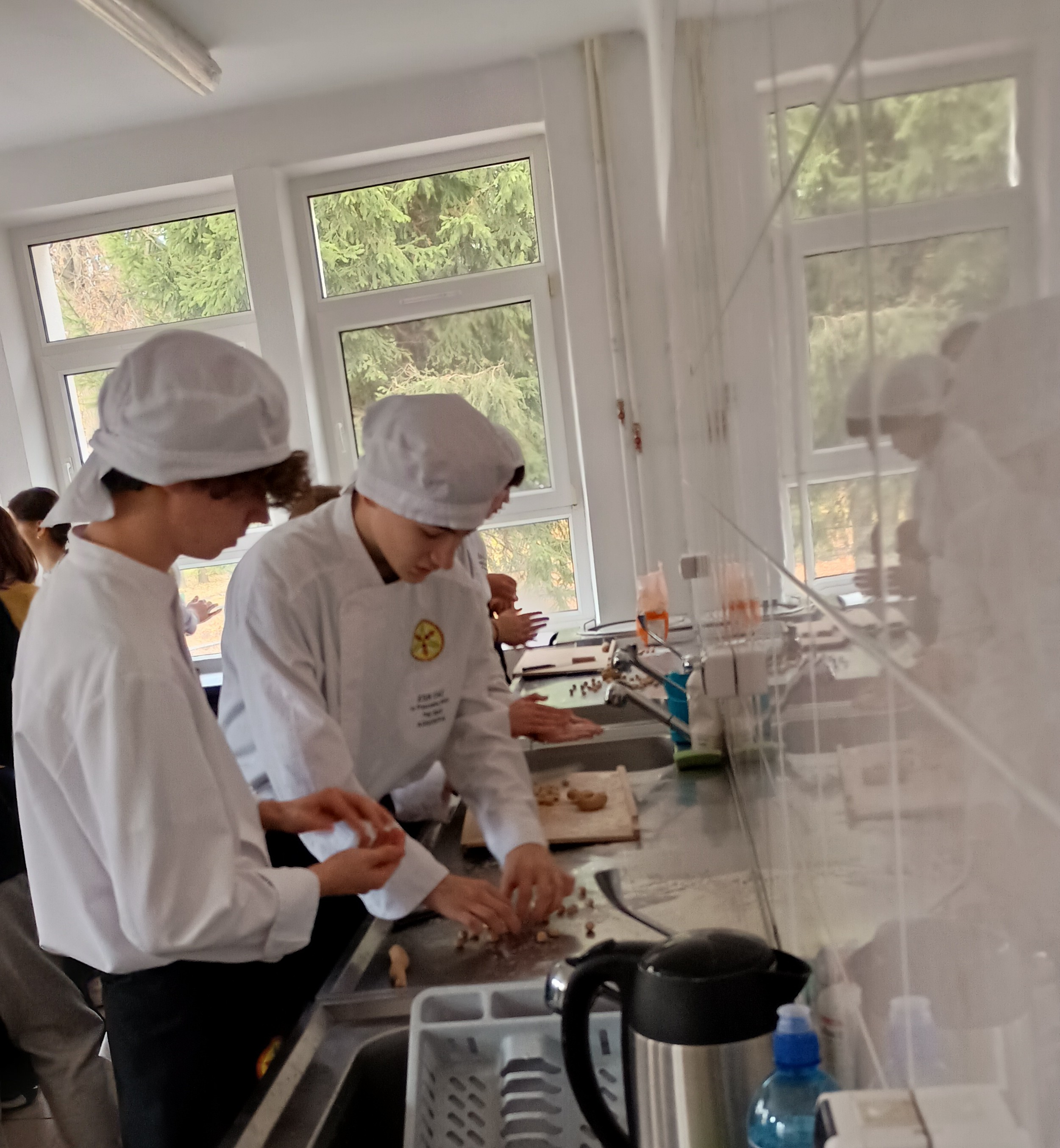 15 listopada 2024r. uczniowie kształcący się w zawodzie technik żywienia i usług gastronomicznych uczestniczyli w warsztatach wypieku i zdobienia pierniczków. Warsztaty poprowadził pan Karel Ostarek – uczestnik międzynarodowych konkursów wypieku i zdobienia wyrobów z ciasta piernikowego. Zajęcia były podzielone na dwie części: teoretyczną ,podczas której omówiono historię oraz surowce służące do wypieku pierników i praktyczną. Zaproponowana przez prowadzącego prezentacja zawierała również zdjęcia nagrodzonych wyrobów piernikowych wypiekanych w tzw. formule 3D. Po części teoretycznej nastąpiła część praktyczna czyli wałkowanie wycinanie, wypiekanie i zdobienie.