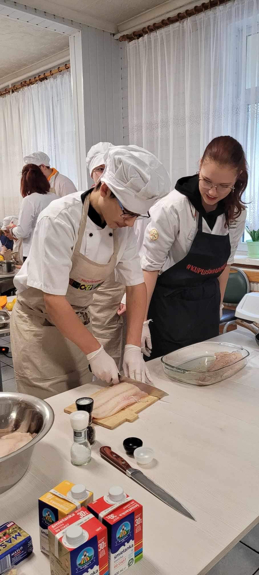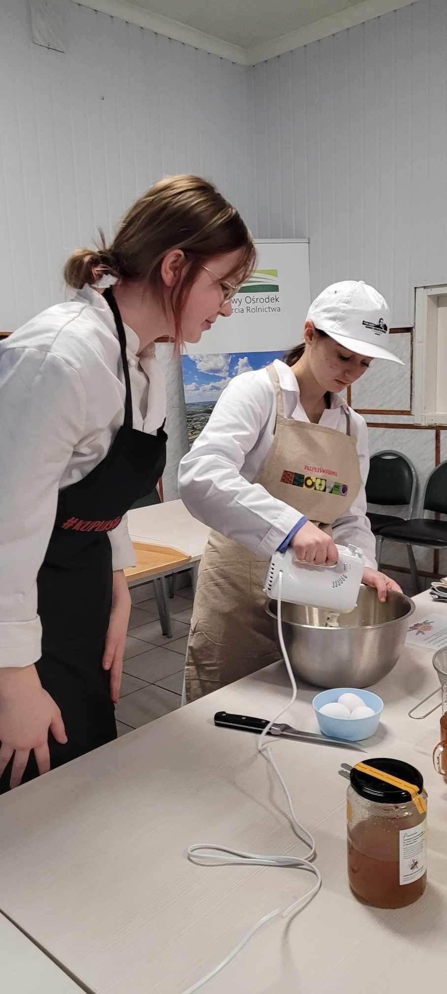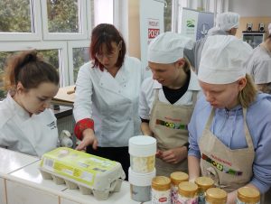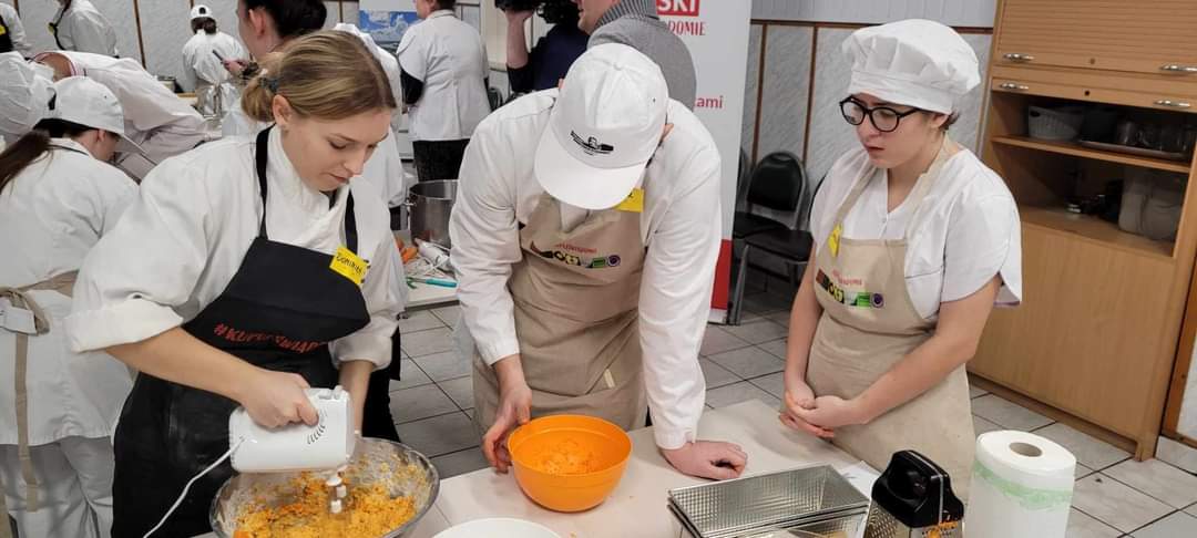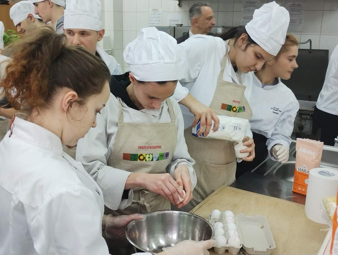 12 i 14 grudnia 2023 roku odbyły się warsztaty o tematyce świątecznej prowadzone przez uczennice z Technikum Żywienia i Usług Gastronomicznych dla młodzieży z Ośrodków Szkolno Wychowawczych w Lublinie i w Olbięcinie. Warsztaty organizowane były przez Krajowy Ośrodek Wsparcia Rolnictwa Oddział Terenowy w Lublinie. Celem spotkań pod hasłem „ Kupuj Świadomie” była edukacja w zakresie bogactwa , walorów odżywczych i korzyści ze stosowania żywności certyfikowanej i ekologicznej w jadłospisie, a także podkreślenie wagi znaczenia PRODUKT POLSKI. Do przygotowania potraw wykorzystane były produkty regionalne, a jednym z nich był miód z pszczelowolskiej pasieki. Przede wszystkim taka inicjatywa to dobra zabawa i integracja młodzieży z rożnych jednostek edukacyjnych.