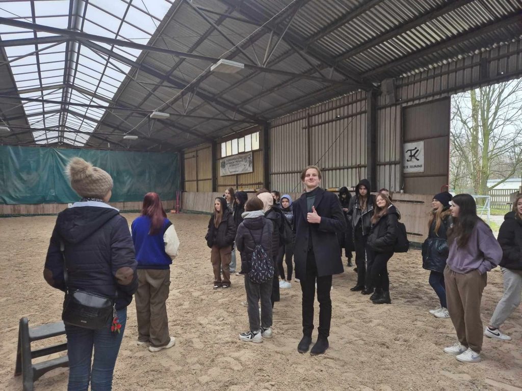 13 marca 2024 r. uczniowie pierwszej i drugiej klasy technikum o profilu Technik hodowca koni, mieli okazję zapoznać się z infrastrukturą gospodarstwa na Felinie związanej z hodowlą i użytkowaniem koni. Mieliśmy przyjemność poznać ,,przesłodkie” alpaki, rzadko spotykaną już rasę krów białogrzbiety w wydaniu czarnym i czerwonym. Oczywiście nie zabrakło różnych ras koni – począwszy od mini szetlandów a kończąc na naszych małopolakach. Zwiedziliśmy całą infrastrukturę ,,końską” – stajnie, ujeżdżalnie kryte. Zwróciliśmy uwagę na rodzaje podłoża, systemy ogrodzeniowe oraz wiele innych ciekawych rozwiązań technicznych ułatwiających użytkowanie oraz hodowlę koni. Na koniec mieliśmy okazję posłuchać bardzo ciekawego mini wykładu emerytowanego już Pana profesora Ryszarda Kolstrunga na temat historii i powstania rasy kuc feliński. Miejmy nadzieję, że niektórzy uczniowie technikum powrócą w mury uczelni już jako studenci kierunku hipologicznego.