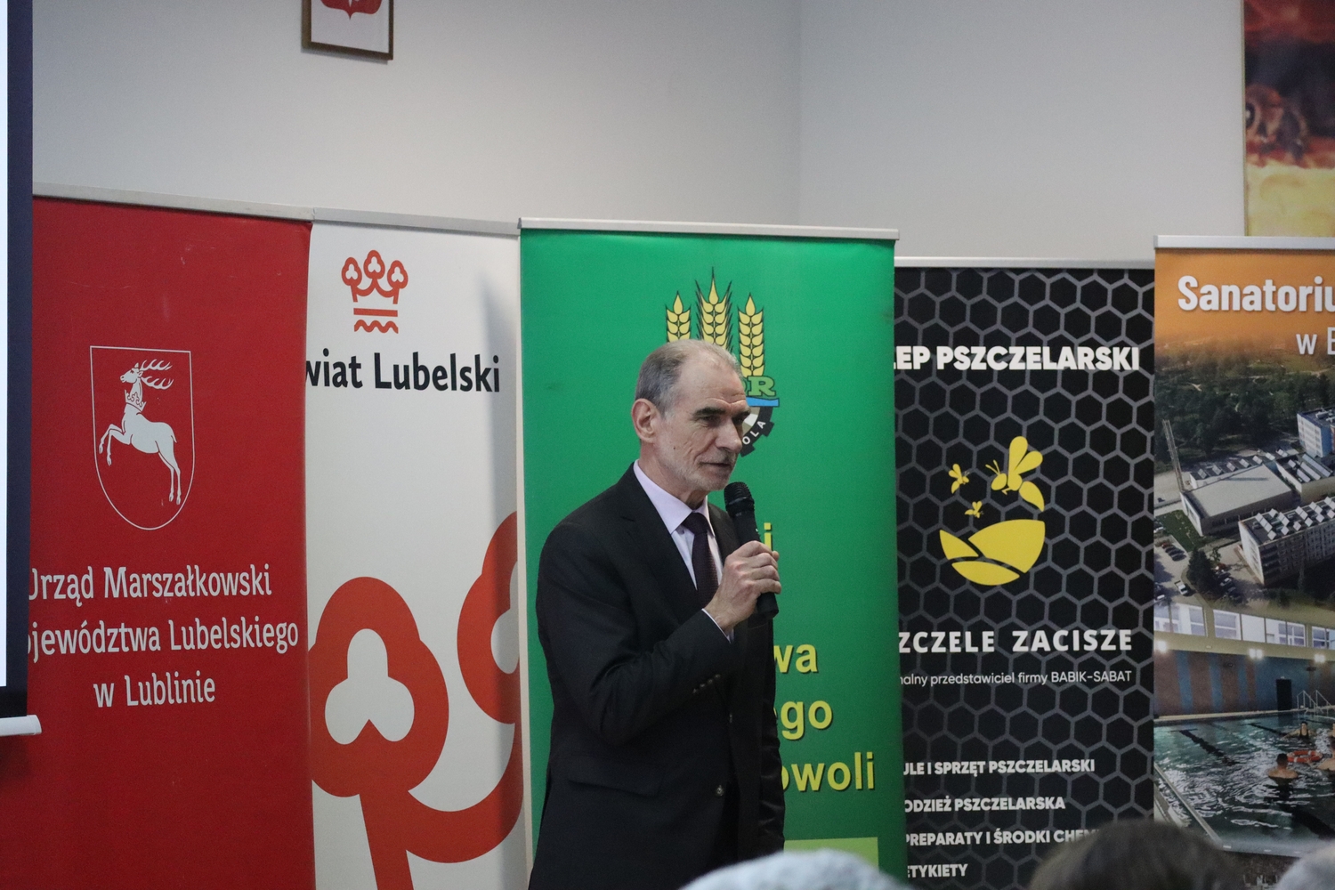 Podczas uroczystej inauguracji konferencji wszystkich zebranych powitał dyrektor Zespołu Szkół Rolniczych CKZ w Pszczelej Woli – Pan Marcin Kępowicz, życząc trafnych wniosków, owocnej współpracy, nowych pomysłów. Pan dyrektor w swoim wystąpieniu podkreślił, że praca pszczelarza, troska o pszczoły ma bardzo duży wpływ na funkcjonowanie środowiska, a przyszłość pszczół jest zależna od człowieka, dlatego tak ważne jest stworzenie odpowiednich warunków do ich rozwoju. Następnie głos zabrali zaproszeni goście i wręczone zostały medale okolicznościowe z okazji 100-lecia powstania pierwszej organizacji pszczelarskiej przez pana Zbigniewa Kołtowskiego – wiceprezydenta Polskiego Związku Pszczelarskiego.
