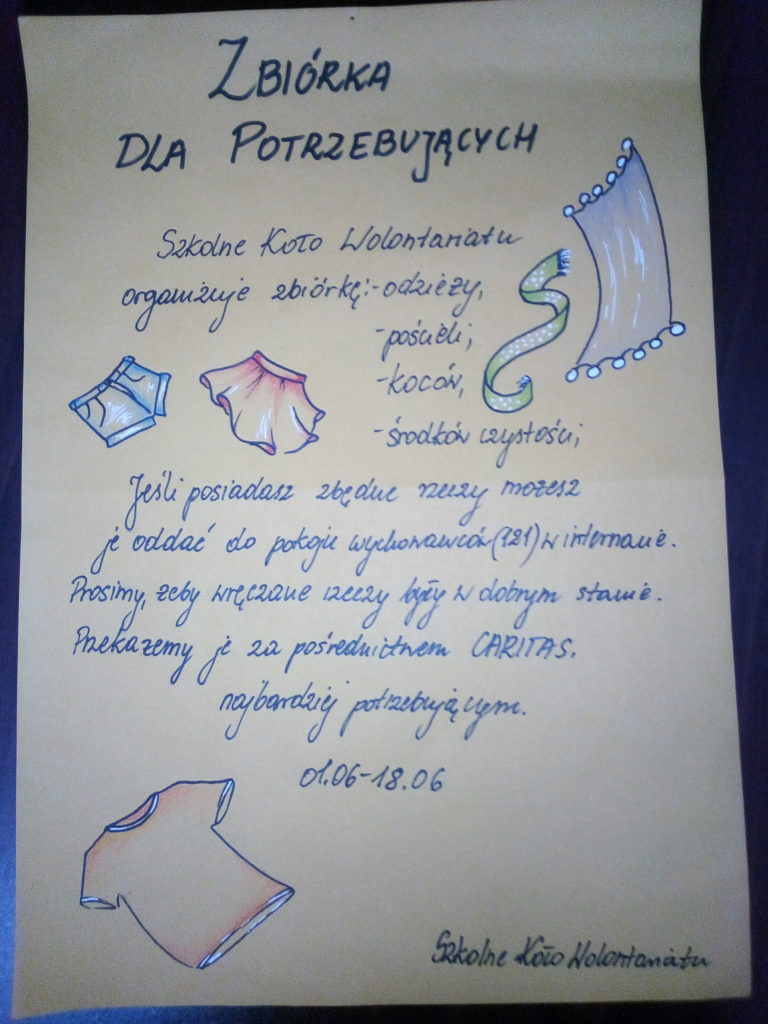 Szkolne Koło Wolontariatu organizuje zbiórkę: