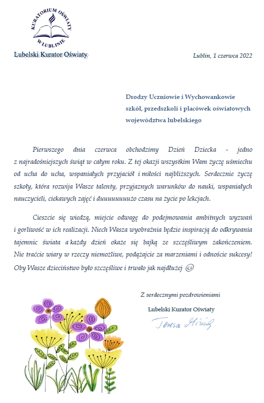 Życzenia Lubelskiej Kurator Oświaty